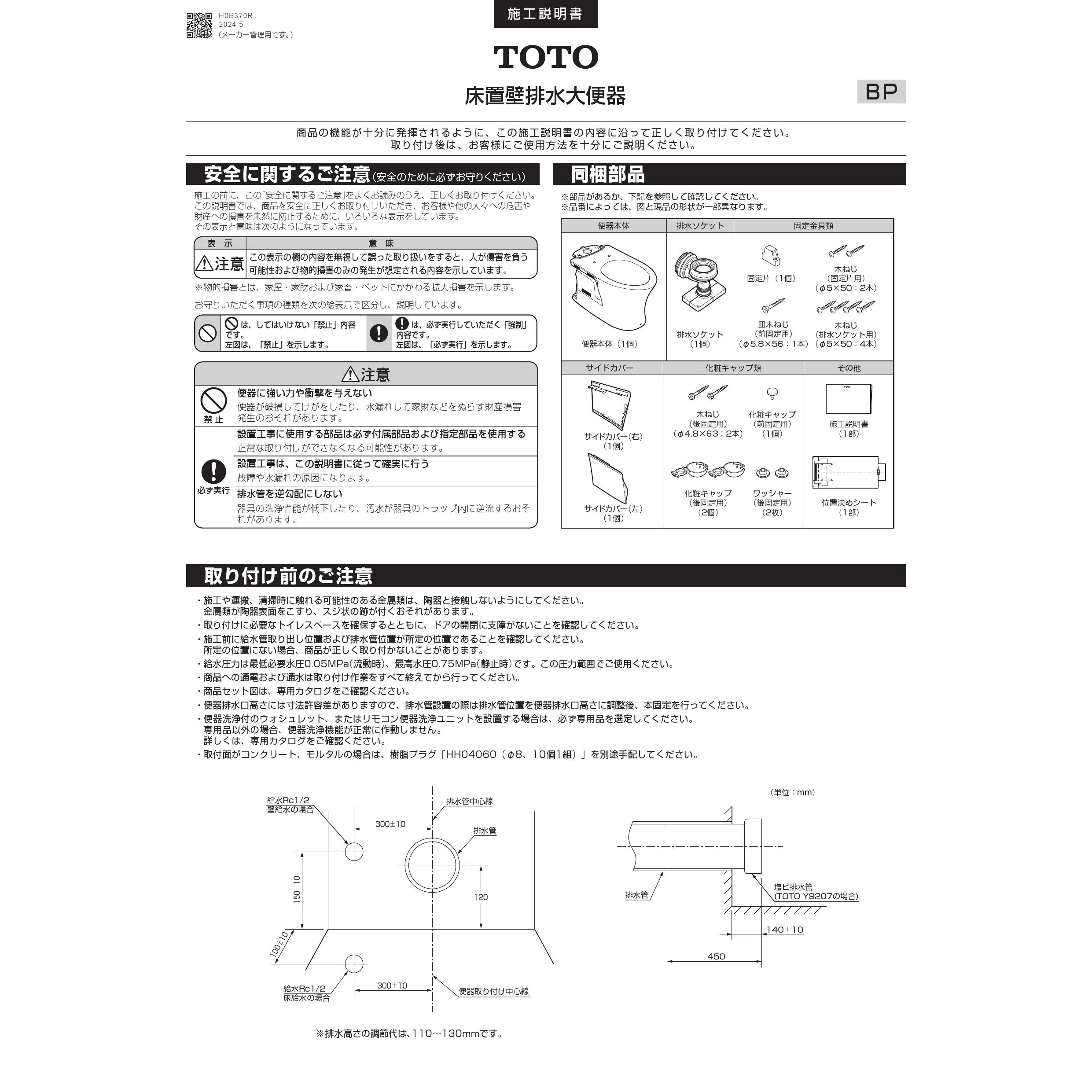 CS232BP 床置床排水大便器ピュアレストQR施工説明書