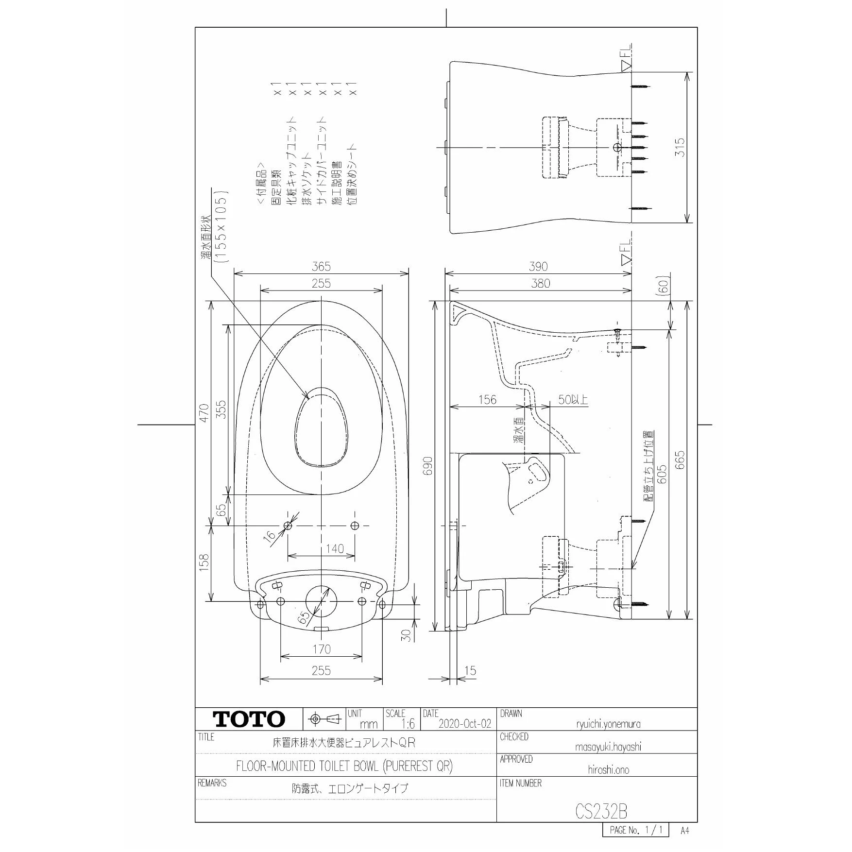 CS232B 床置床排水大便器ピュアレストQR商品図面