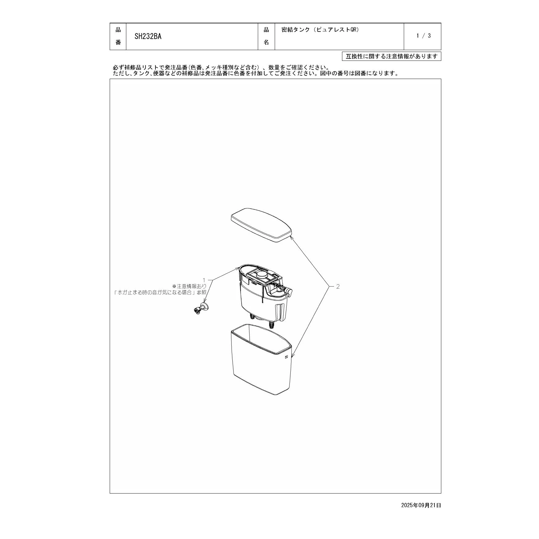 TOTO CS232B+SH233BA+TCF6544AK ピュアレストQR+ウォシュレットSS2A 取扱説明書 商品図面 施工説明書 分解図