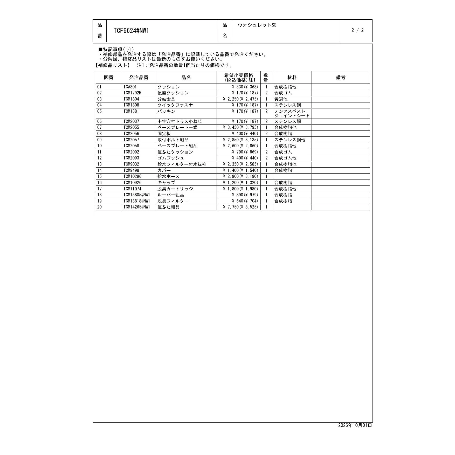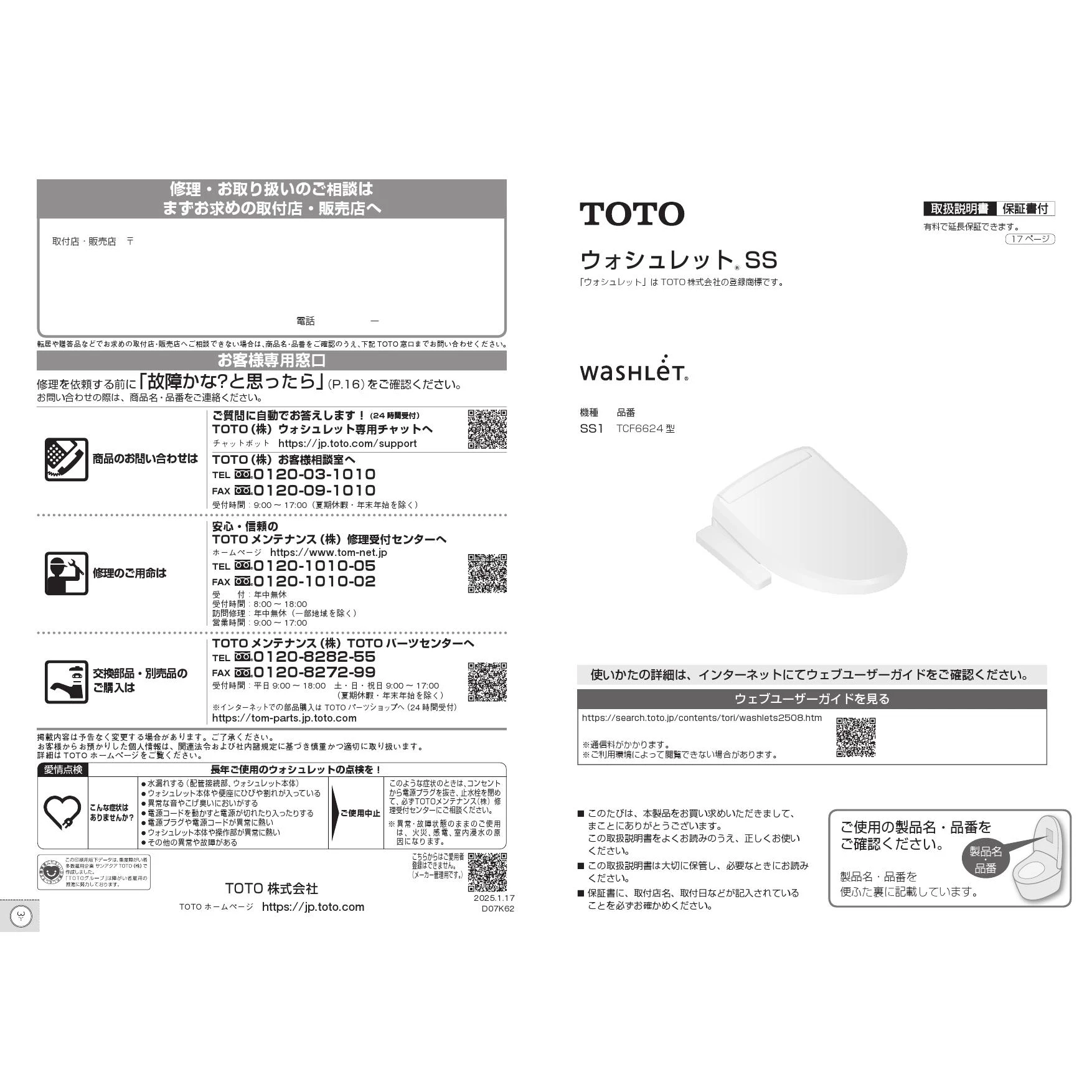 TOTO CS232BM+SH232BA+TCF6624 ピュアレストQR+ウォシュレットSS1 取扱説明書 商品図面 施工説明書 分解図