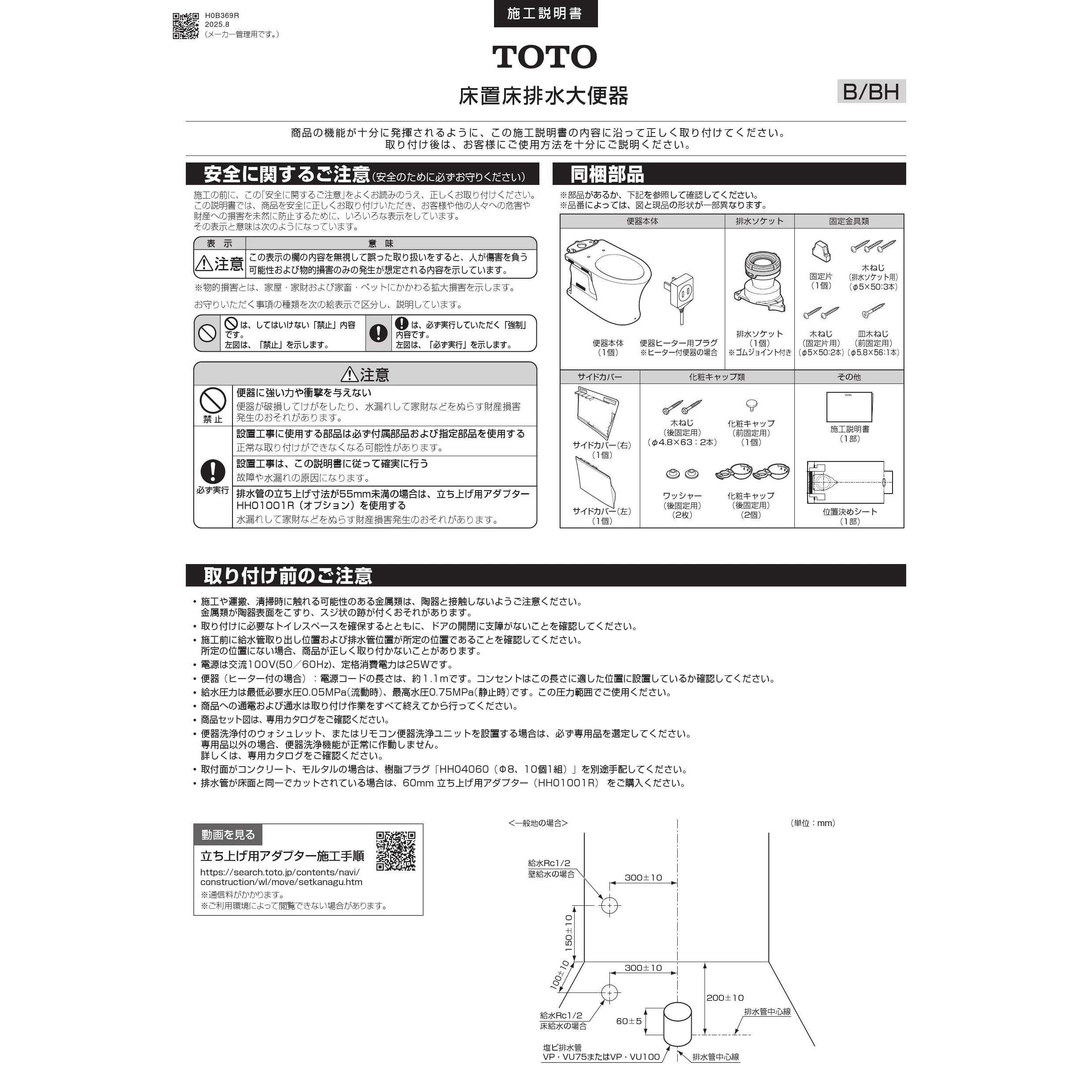 CS232B 床置床排水大便器ピュアレストQR施工説明書