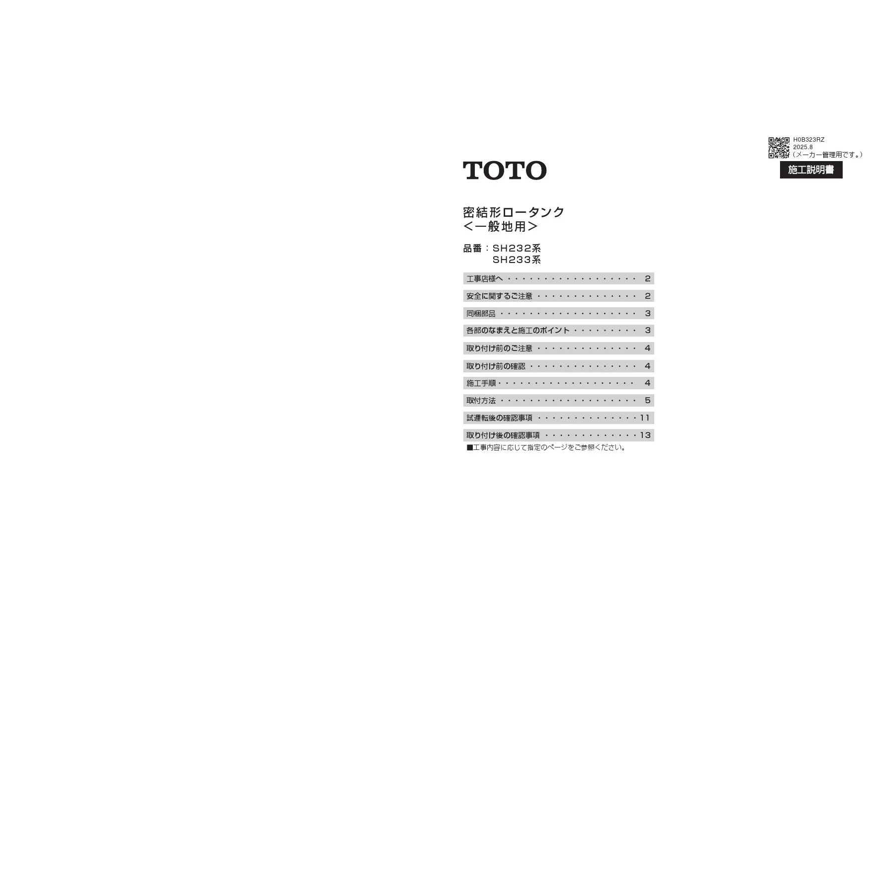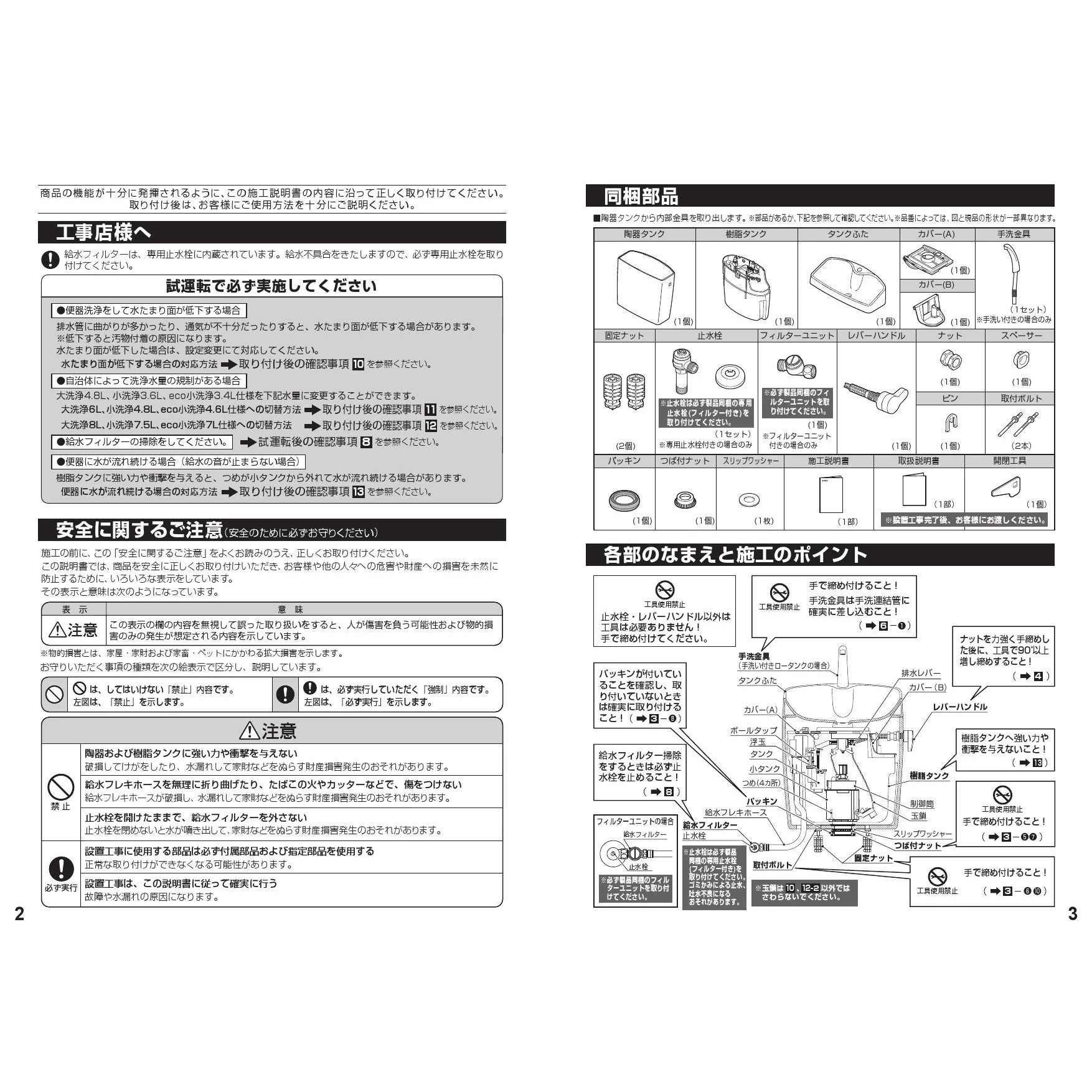 SH233BAK 手洗付密結タンク施工説明書