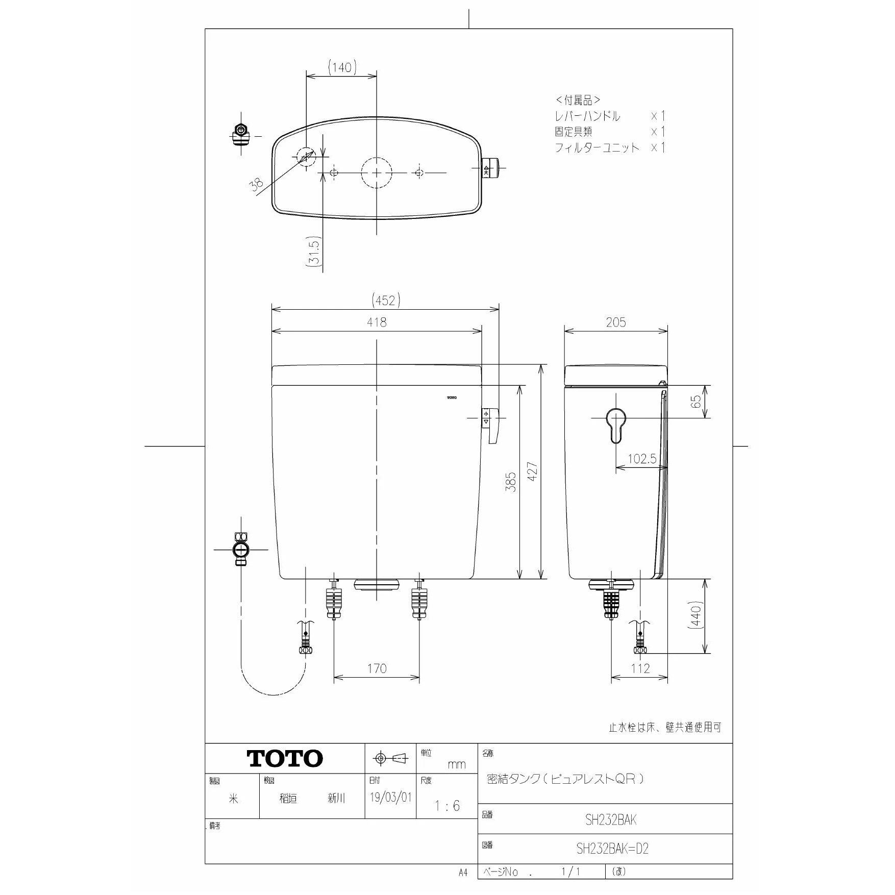 SH233BAK 手洗付密結タンク取扱説明書