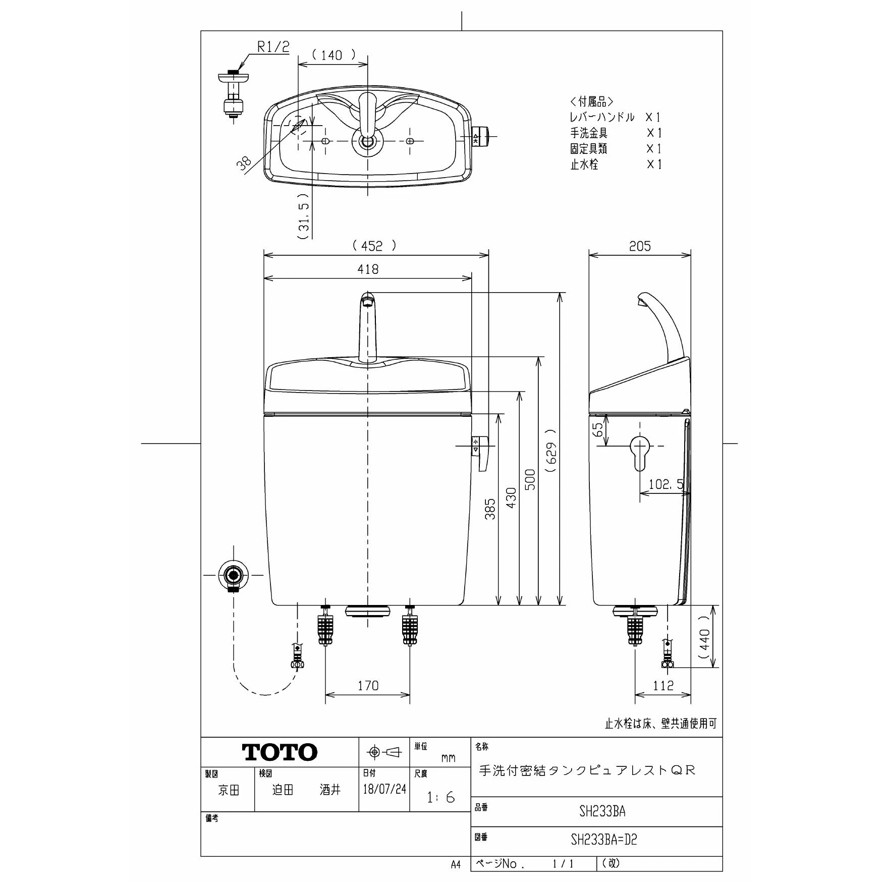TOTO CS232BP+SH233BA+TCF6544AF ピュアレストQR+ウォシュレットSS2A 取扱説明書 商品図面 施工説明書 分解図