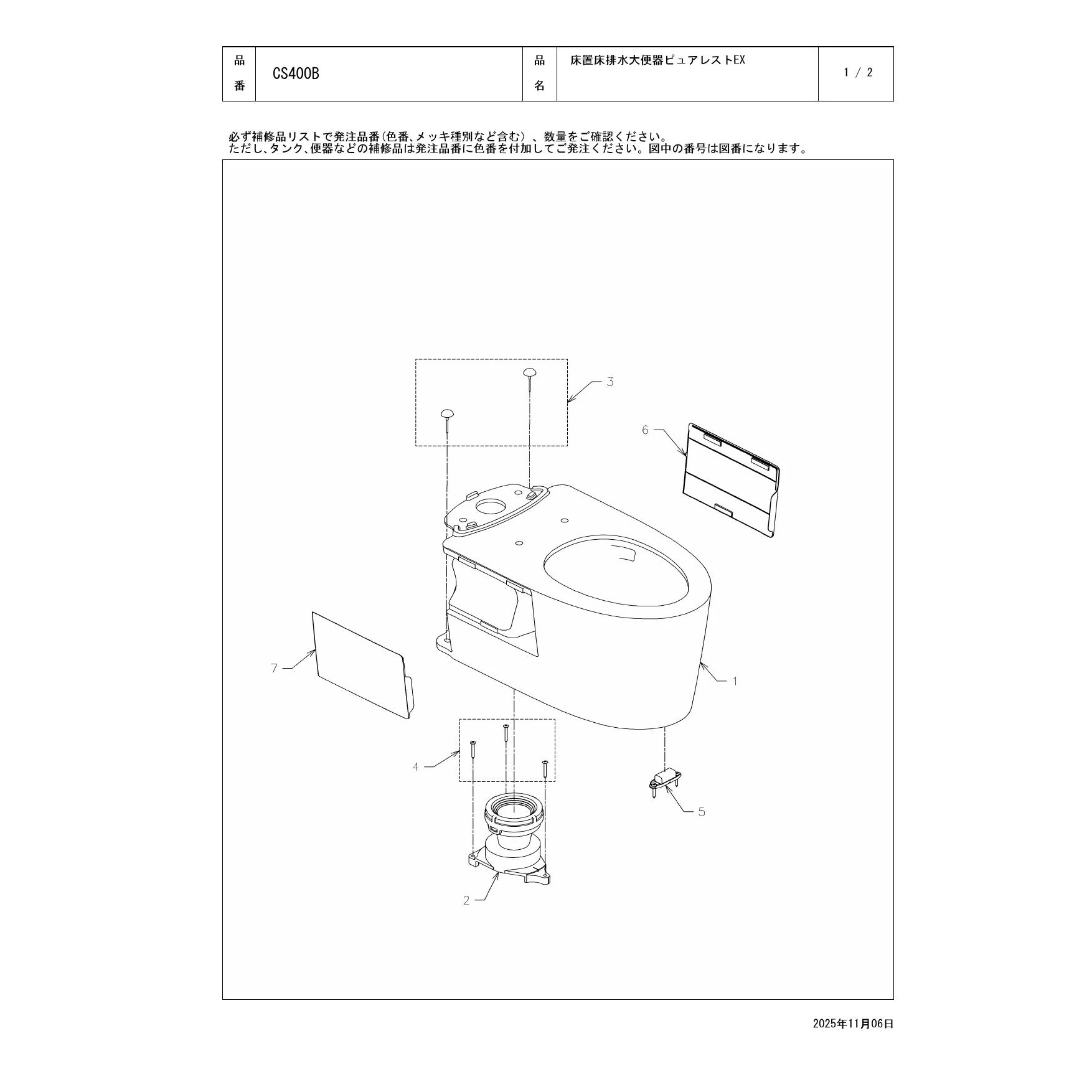 CS400B 床置床排水大便器ピュアレストEX分解図
