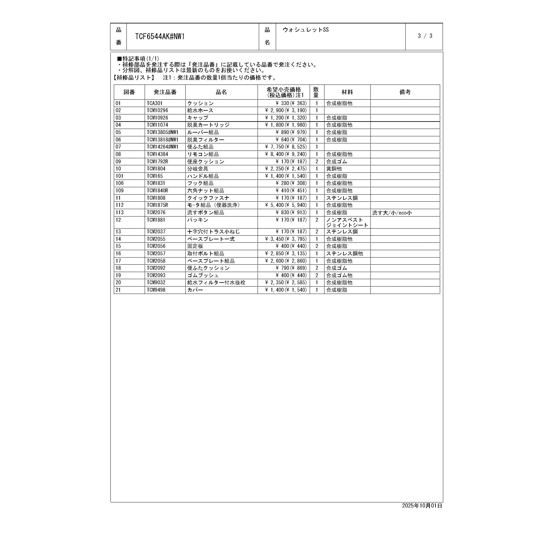 TOTO CS400B+SH400BAK+TCF6544AK ピュアレストEX+ウォシュレットSS2A 取扱説明書 商品図面 施工説明書 分解図