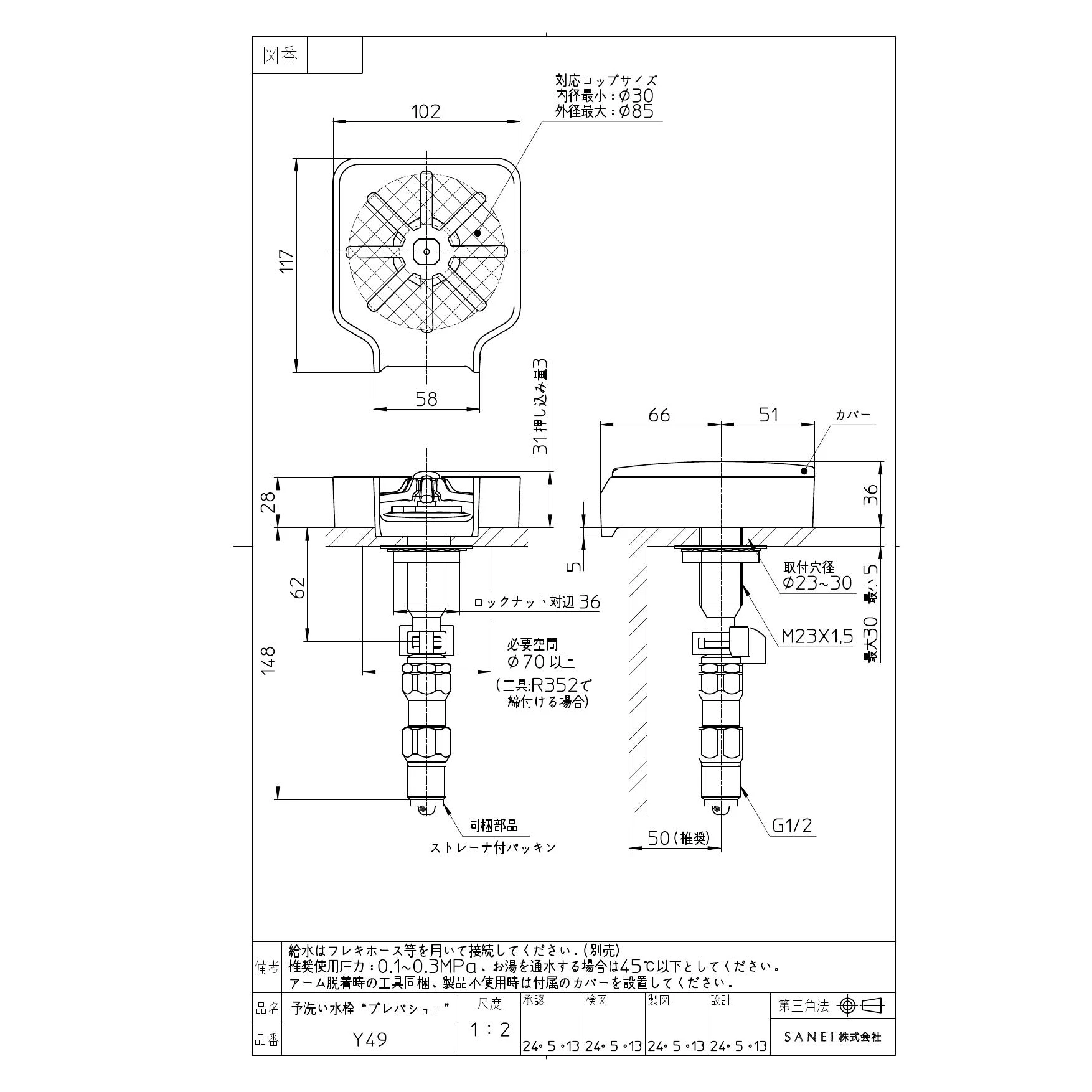 住宅設備のプロストア ダイレクト ホーム SANEI (サンエイ) 水栓・蛇口 単水栓 厨房用水栓 Y49-D7 図面・説明書 SANEI Y49-D7 商品図面 各種図面のご利用については 免責事項をご確認の上ご利用ください。 Y49-D7 SANEI(サンエイ) 予洗い水栓 プレパシュ+ 25.0%OFF 価格 ¥79,200 商品図面 このデータは2025年11月 現在のものです。 商品図面の一括ダウンロード SANEIカスタマーセンター SANEIお問い合わせ SANEIトップページフリーダイヤル:0120-06-9721 受付時間:月~金 9:00~17:00(土日祝、夏季休暇、年末年始を除く) ダイレクトが選ばれる理由 プロストア ダイレクトは、一流メーカー住宅設備機器のトイレ・水栓・給湯器などを卸値価格で販売している会社です。 リフォームに携わる毎日忙しいお客様(一人親方の業者様や工務店様、マンションの管理をしている方)の時間コストを圧縮する(手早くご購入できる)ために、取扱商品35,000点、在庫商品2,300点以上の品揃え!商品仕様などの情報源も支援出来る様なショップを目指しております。 住宅設備機器でお悩みの方は プロストアダイレクトにご相談ください! また、土日、祝祭日、年末年始、夏季期間は翌営業日以降の対応となりますのでご了承ください。 お問い合わせフォーム 平日10時までの注文で在庫商品なら当日発送! 水栓金具を知る× SANEI (サンエイ) 水栓・蛇口 単水栓厨房用水栓 ご利用ガイド キャンセルについて ご注文後のキャンセルは一切承りかねます。品番ご確認の上ご注文ください。 送料について 通常配送料全国一律870円!お買い上げ合計30,000円以上で、通常配送料無料! お支払いについて 代金引換・銀行振込・3Dセキュア対応のクレジットカードがご利用頂けます。 荷受け時の注意事項 荷受け時に必ずお届けの品番とご注文品番に相違がないかをご確認ください。 お届けについて 当店在庫商品の場合、AM10:00までのご注文(ご入金確認)にて当日発送。 返品・交換について 商品の相違や不足が認められる場合、到着後7日以内にご連絡ください。 全商品メーカー保証あり 当店の取り扱い商品は、メーカー正規品の新品につき、メーカー保証が適用されております。 営業日・営業時間について 10:00~18:00(土日祝除く)。時間外のお問合せ・御注文は翌営業日より順次対応。 SSLについて 当店を安心してご利用していただける様、RapidSSLを導入しております。 商品検索 お探しの商品が見つからない場合は、商品名や品番よりお探し頂けます。 検索 住宅設備のプロストア ダイレクト ホーム SANEI (サンエイ) 水栓・蛇口 単水栓 厨房用水栓 Y49-D7 図面・説明書