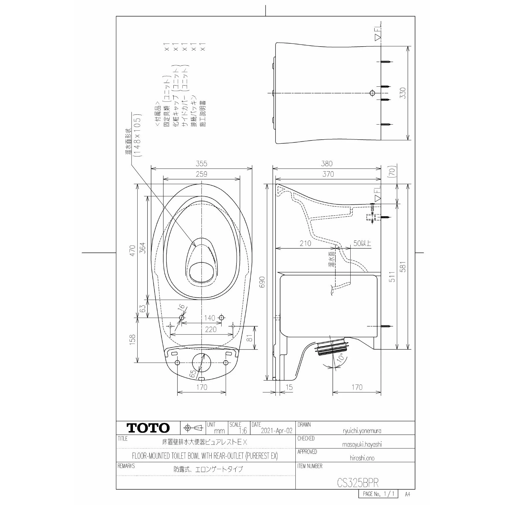 CS325BPR 床置床排水大便器ピュアレストEX商品図面