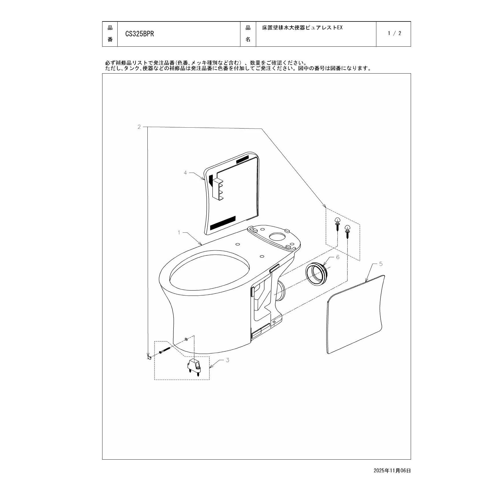 CS325BPR 床置床排水大便器ピュアレストEX分解図