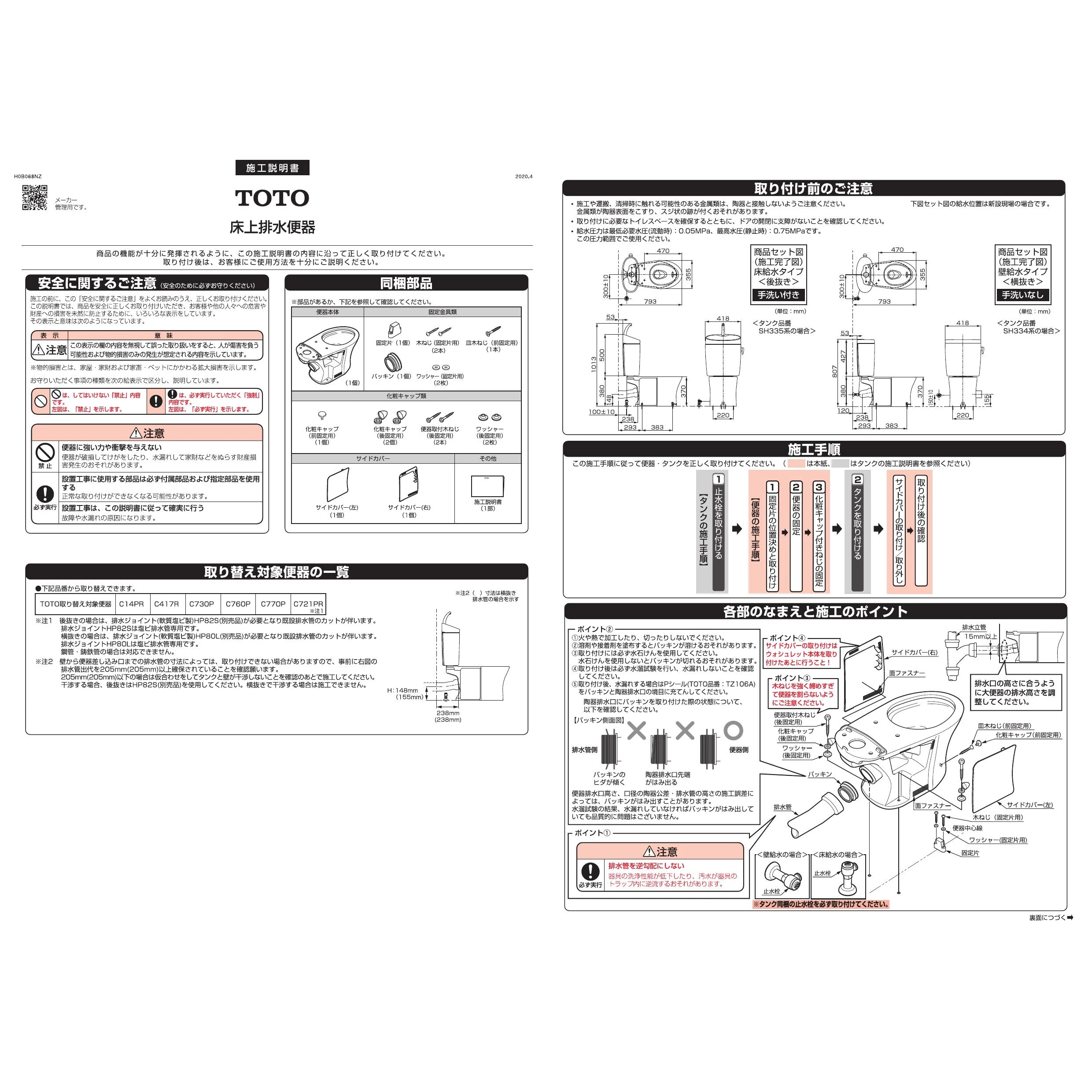 SH334BAK 密結タンク(ピュアレストEX)施工説明書