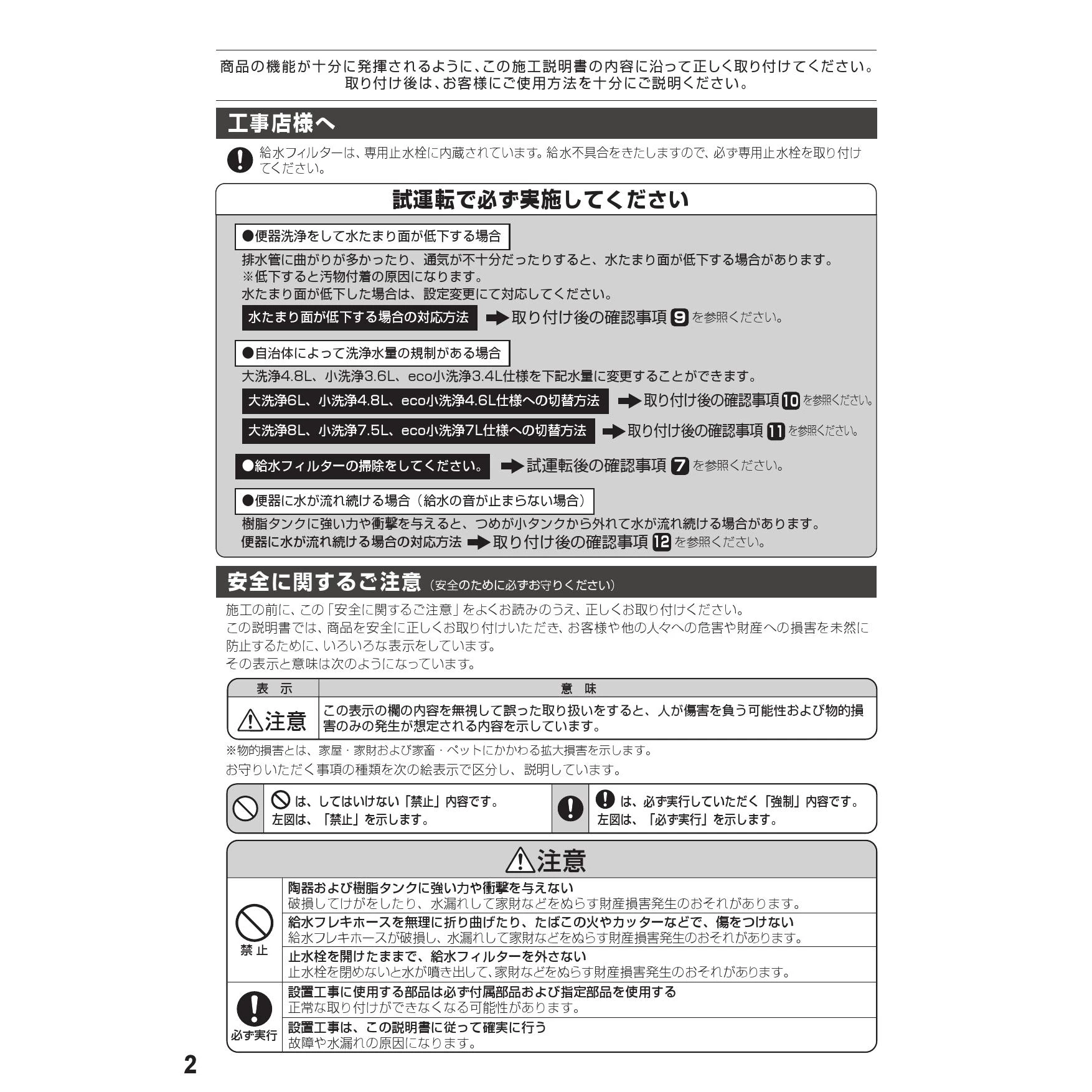 SH335BAK 手洗付密結タンクピュアレストEX施工説明書