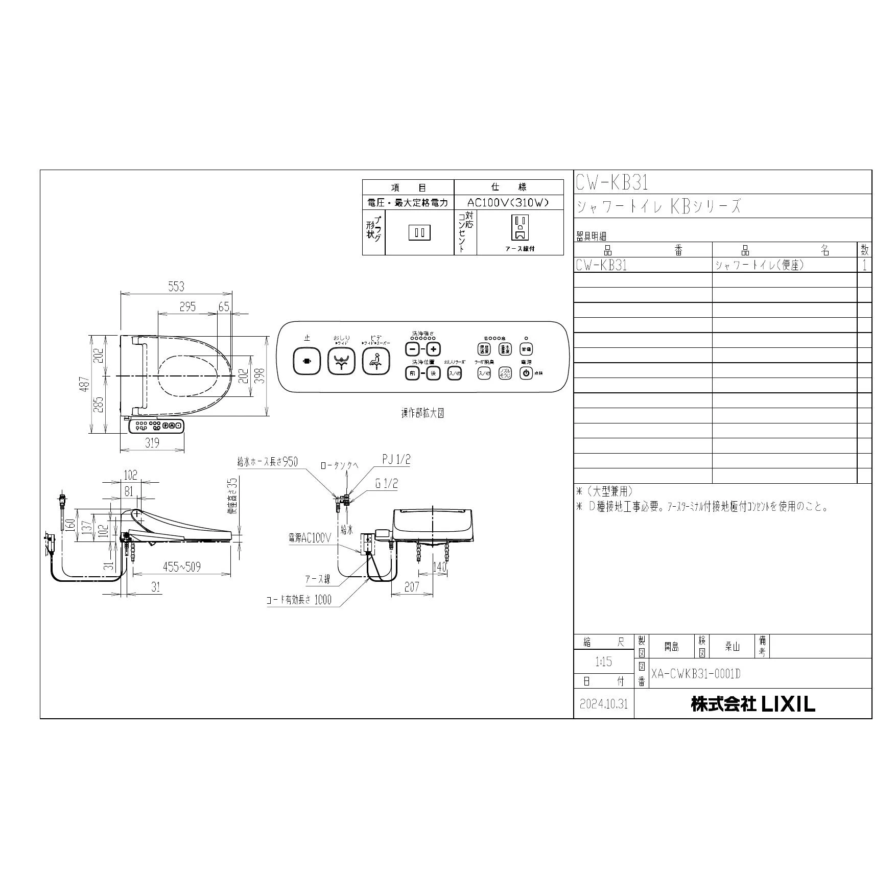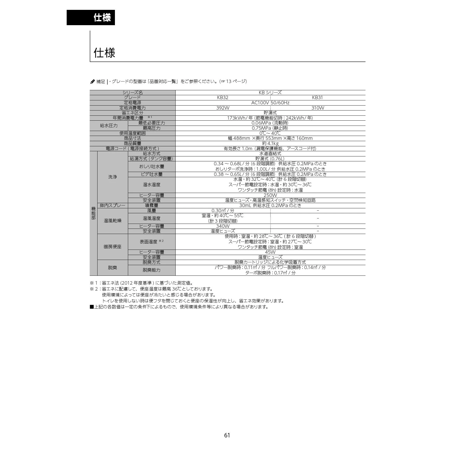 LIXIL(リクシル) YBC-Z30PM BW1+YDT-Z380PMA BW1+CW-KB31 BW1 アメージュ便器+シャワートイレKBシリーズ 取扱説明書 商品図面 施工説明書