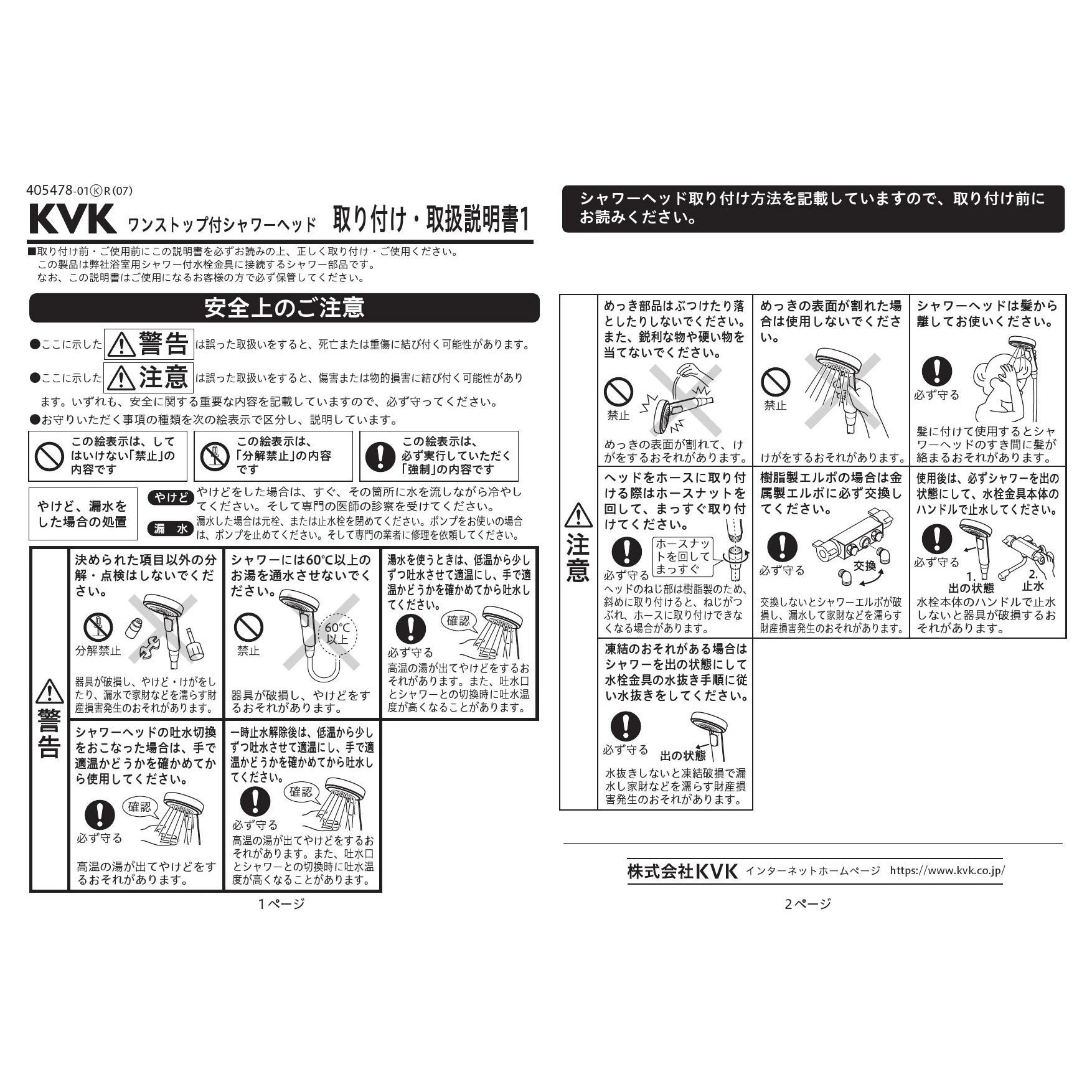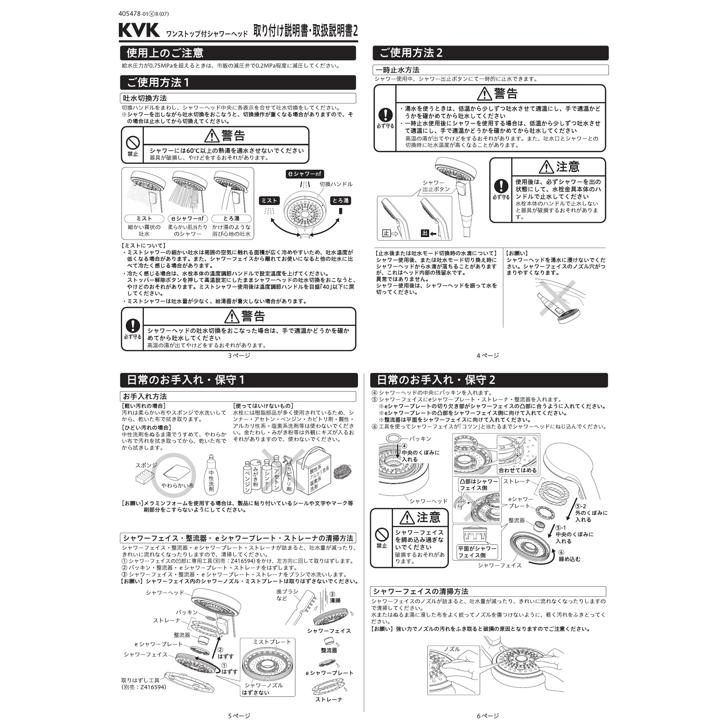 PZS360TB ワンストップ付シャワーヘッド取扱説明書