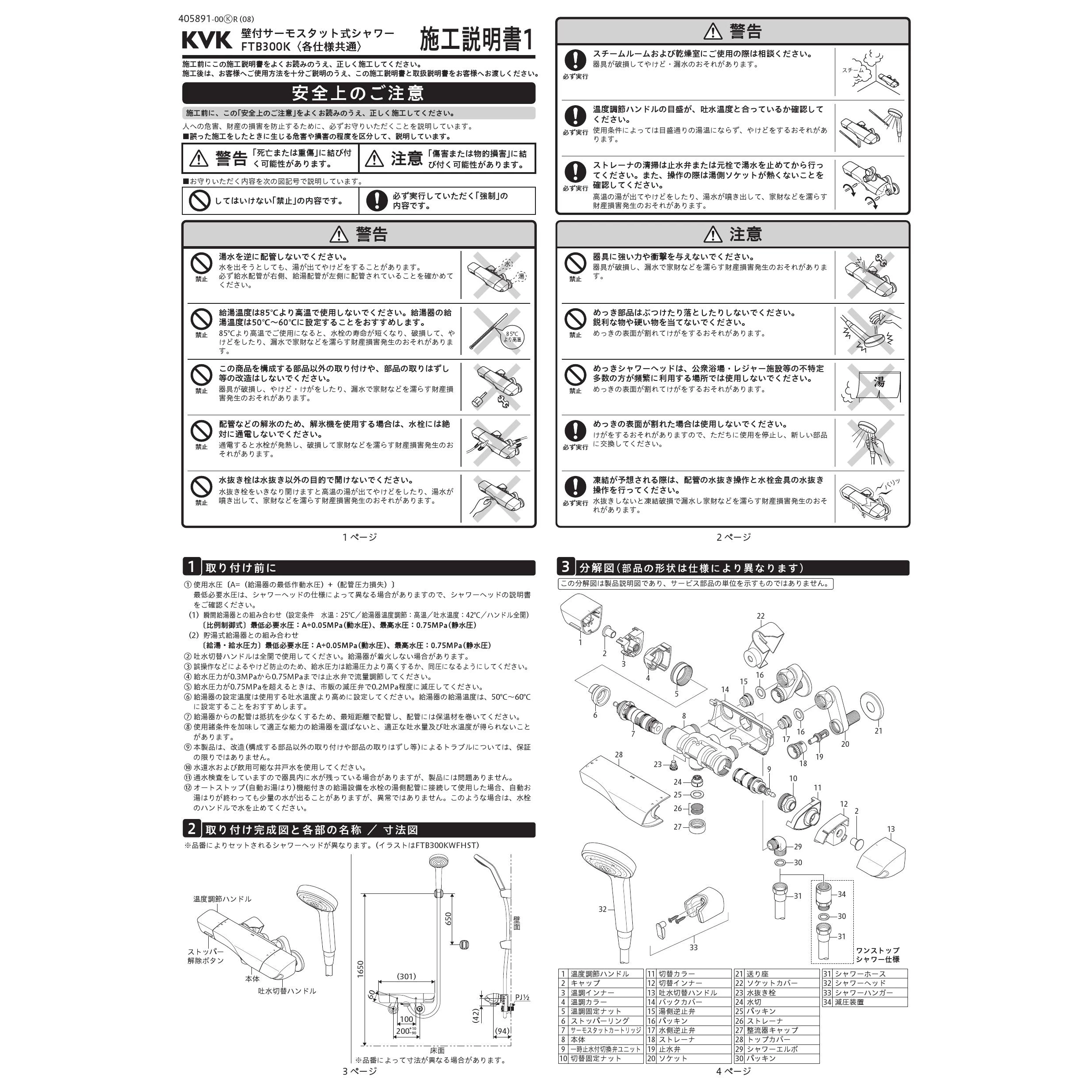 KVK FTB300K3WPHST 取扱説明書 施工説明書