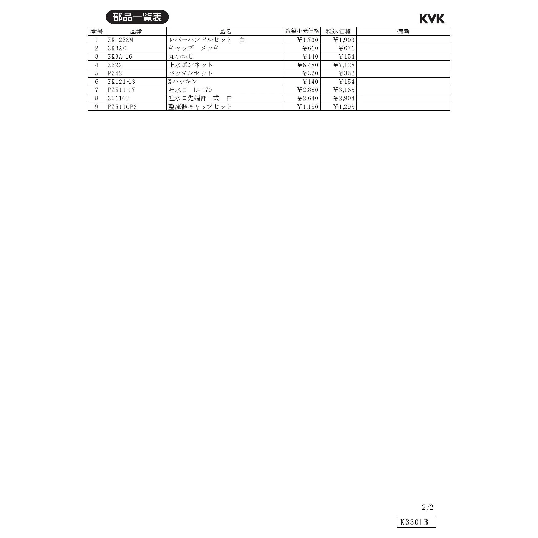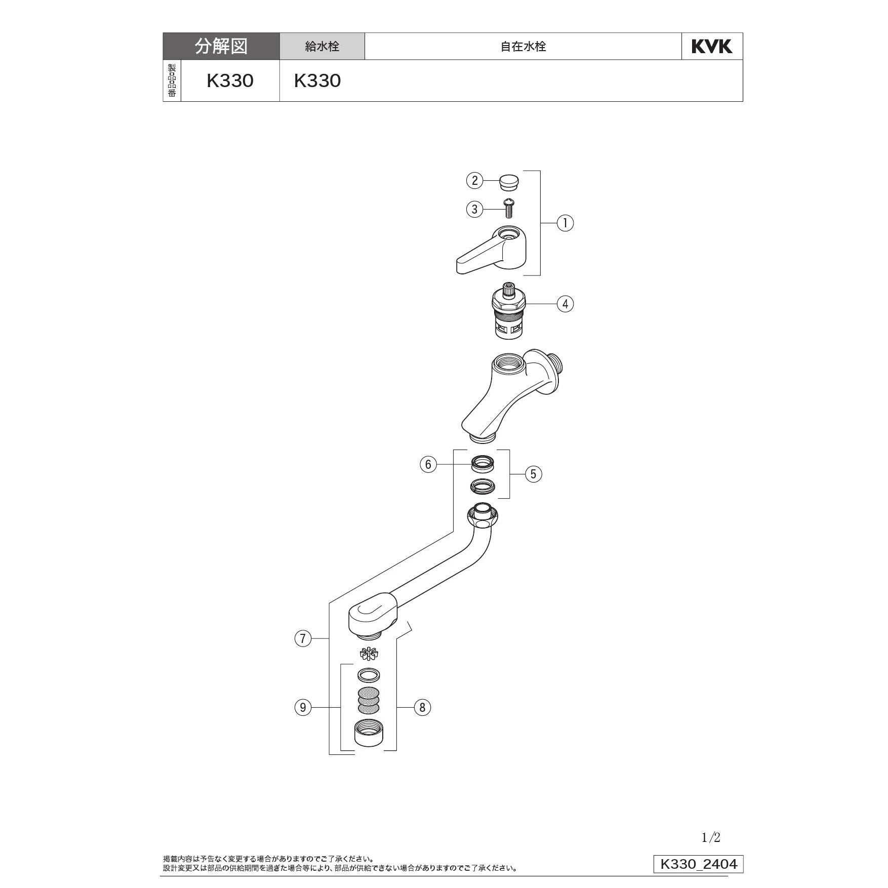 KVK K330 商品図面 分解図