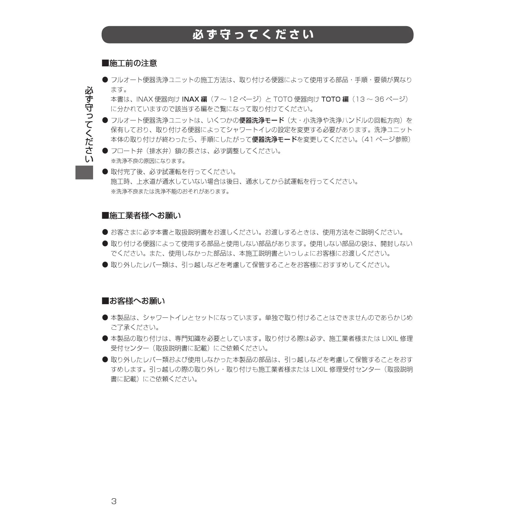 CW-KA32 シャワートイレ施工説明書