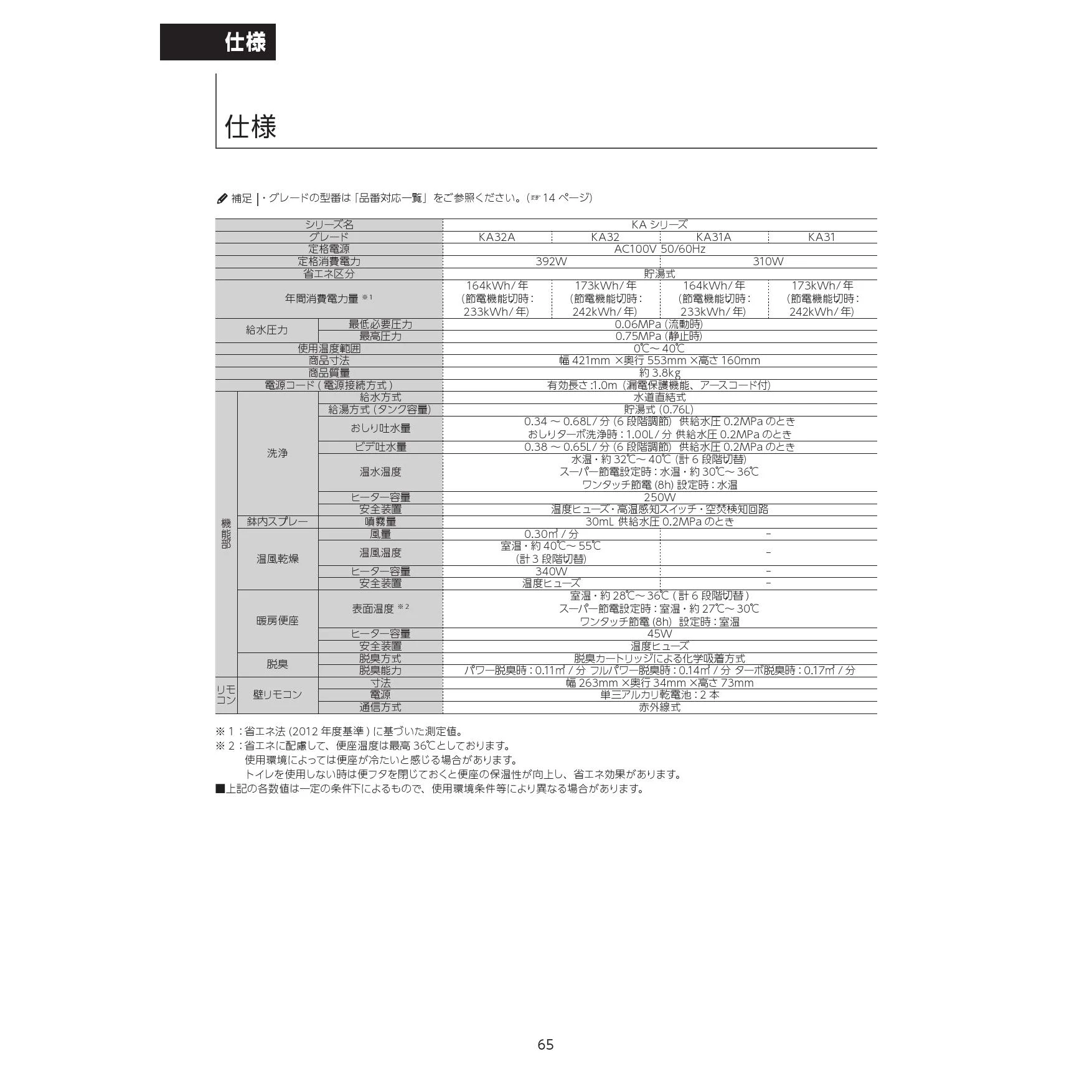 CW-KA32 シャワートイレ取扱説明書