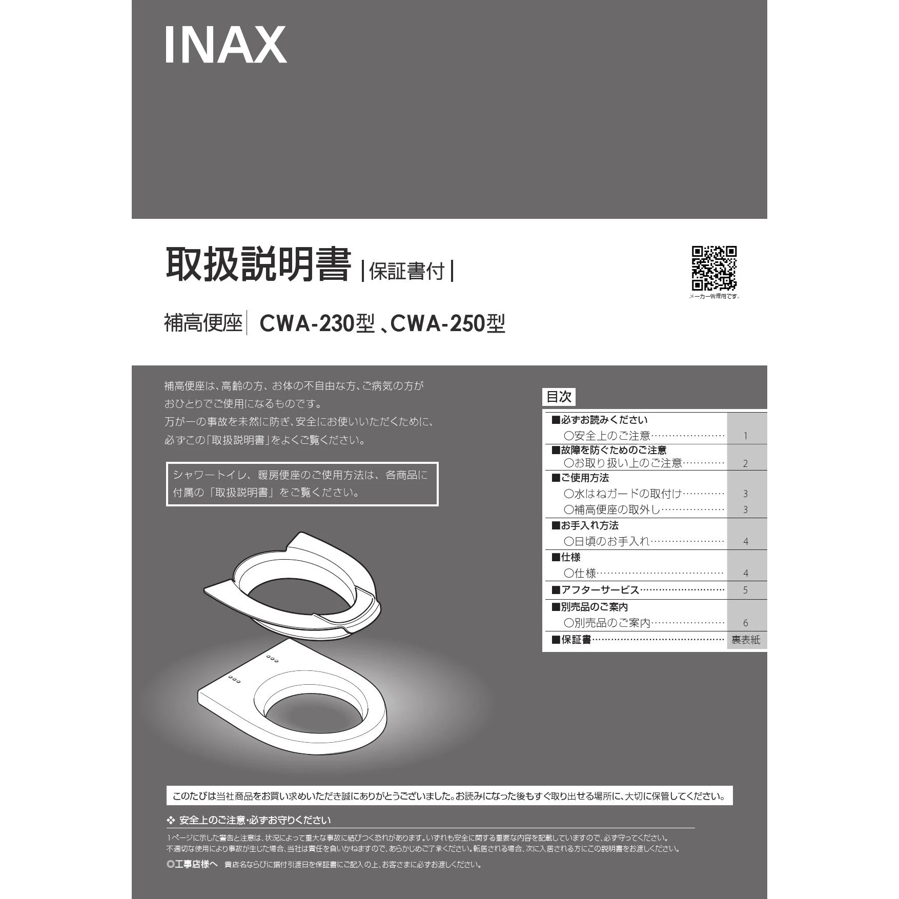 CWA-250 補高便座取扱説明書