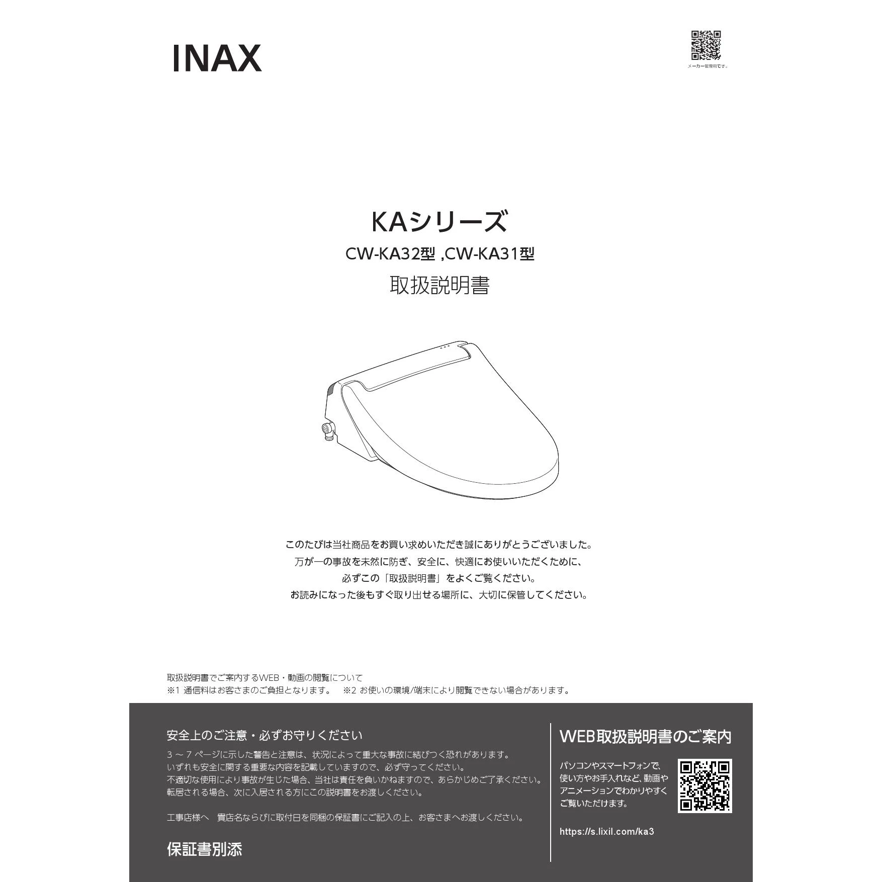 CW-KA32AQC シャワートイレKAシリーズ取扱説明書