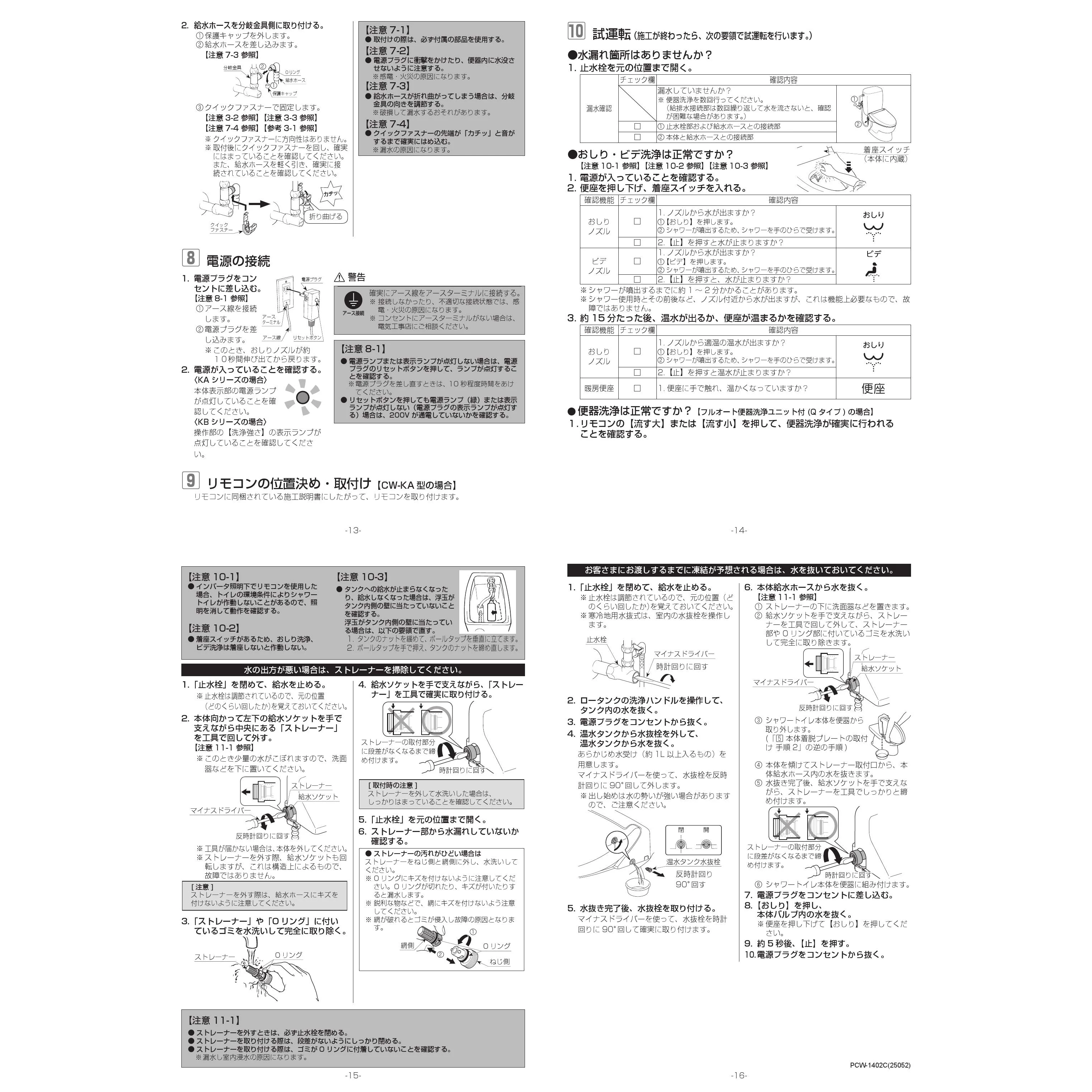 CW-KA31A シャワートイレKAシリーズ施工説明書