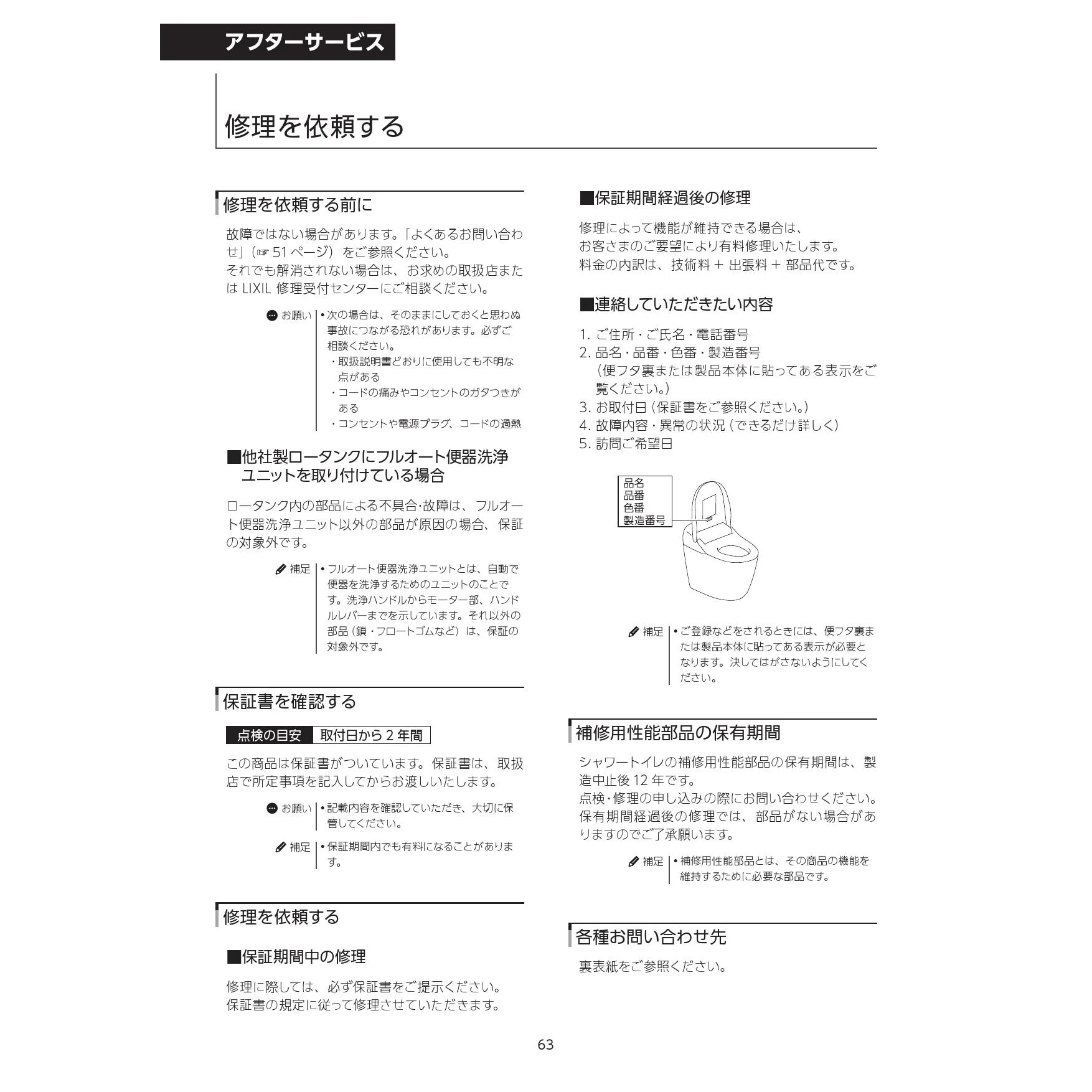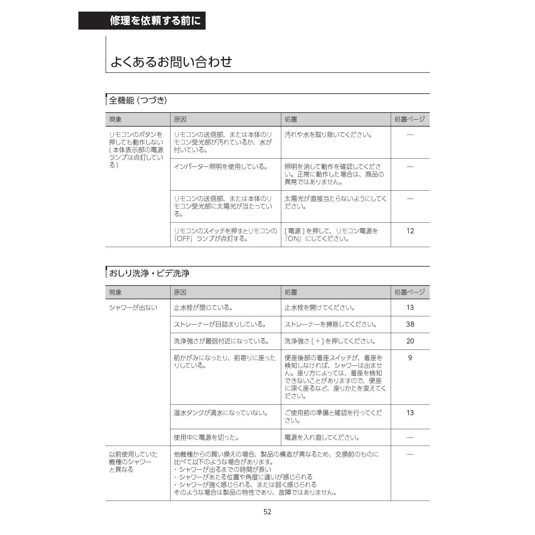 CW-KA31A シャワートイレKAシリーズ取扱説明書