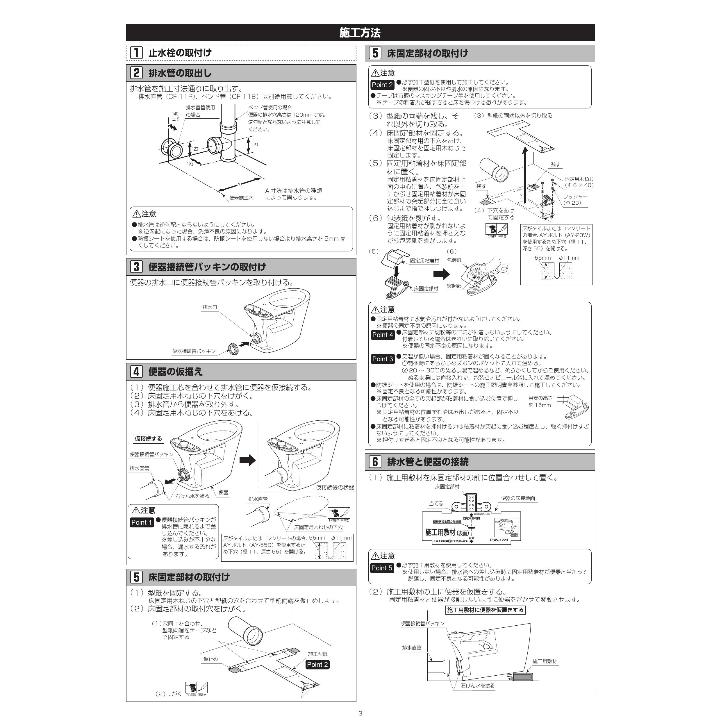 YBC-Z30P 洋風便器(床上排水)施工説明書