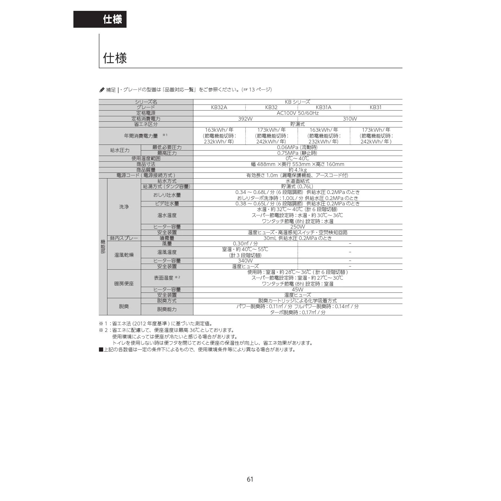 CW-KB31A シャワートイレKBシリーズ取扱説明書
