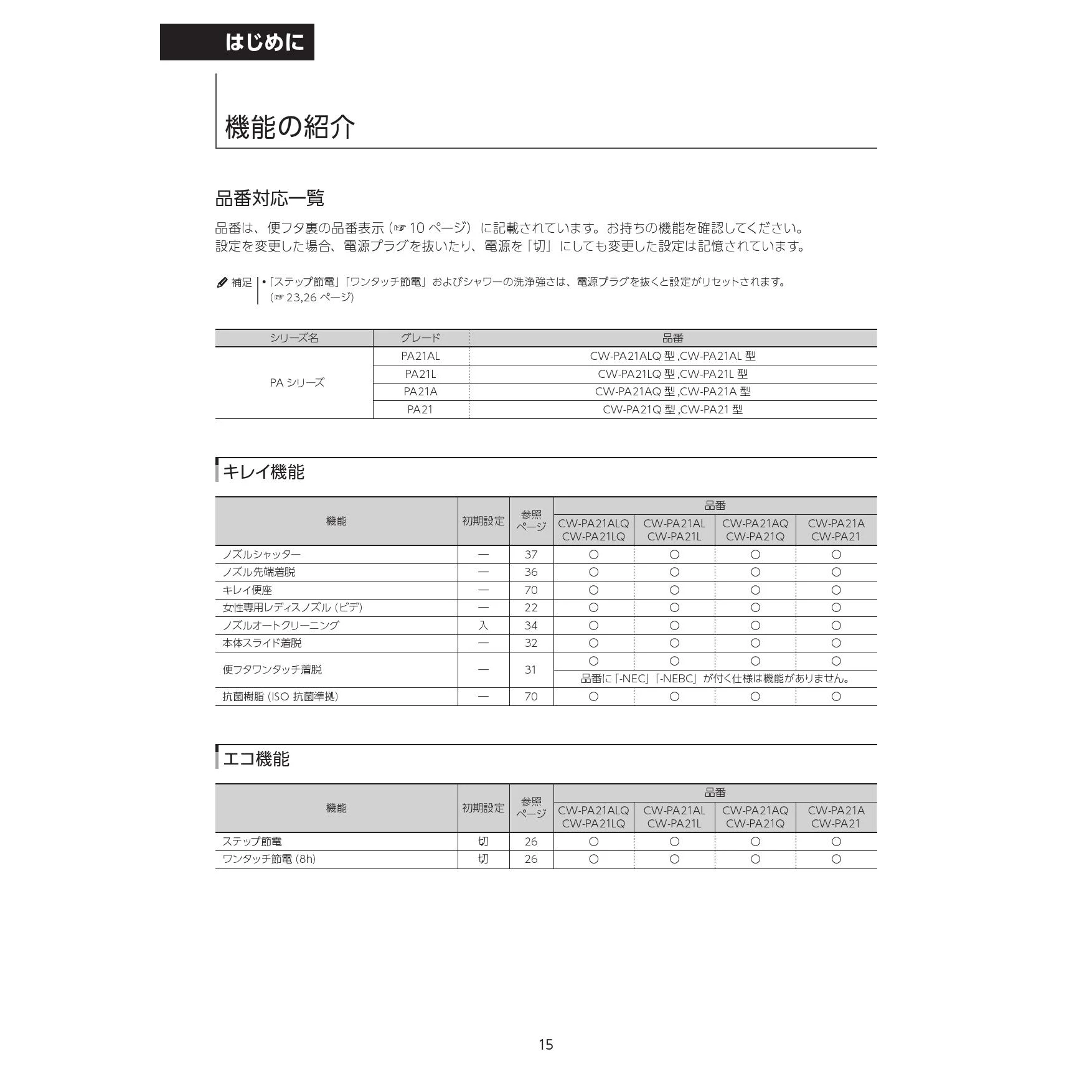 CW-PA21A-NE-R3 シャワートイレPAシリーズ取扱説明書