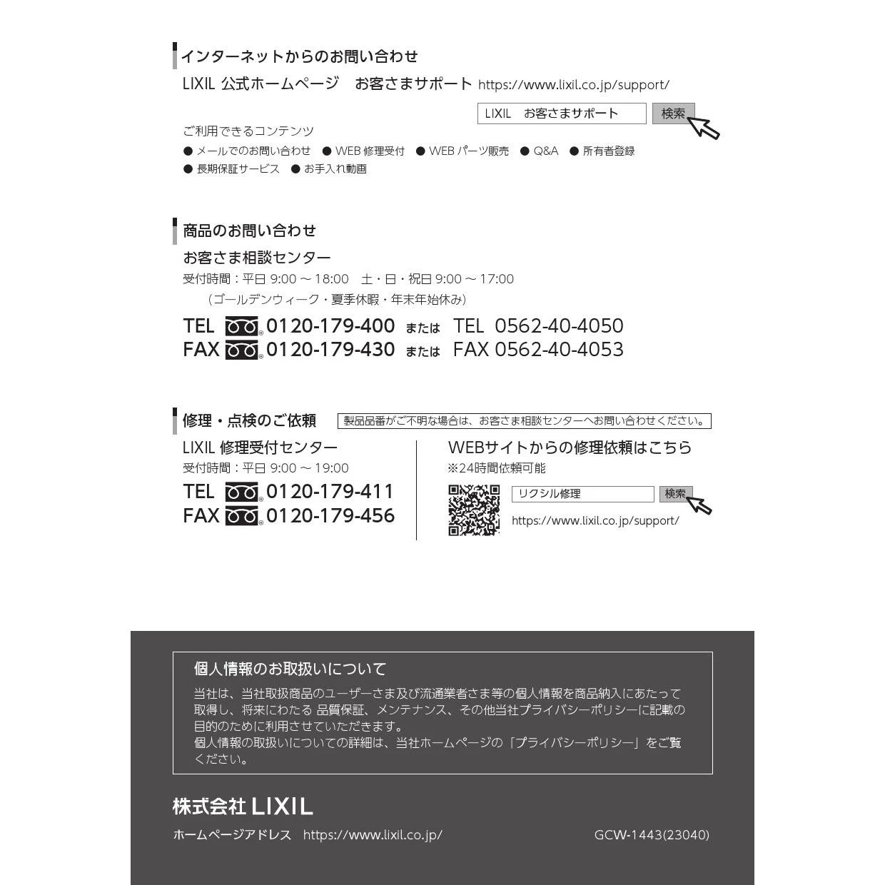 LIXILお客さま相談センター