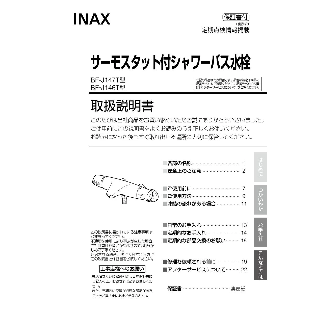 BF-J147TSLA サーモスタット付シャワーバス水栓(BF-J147T型)取扱説明書
