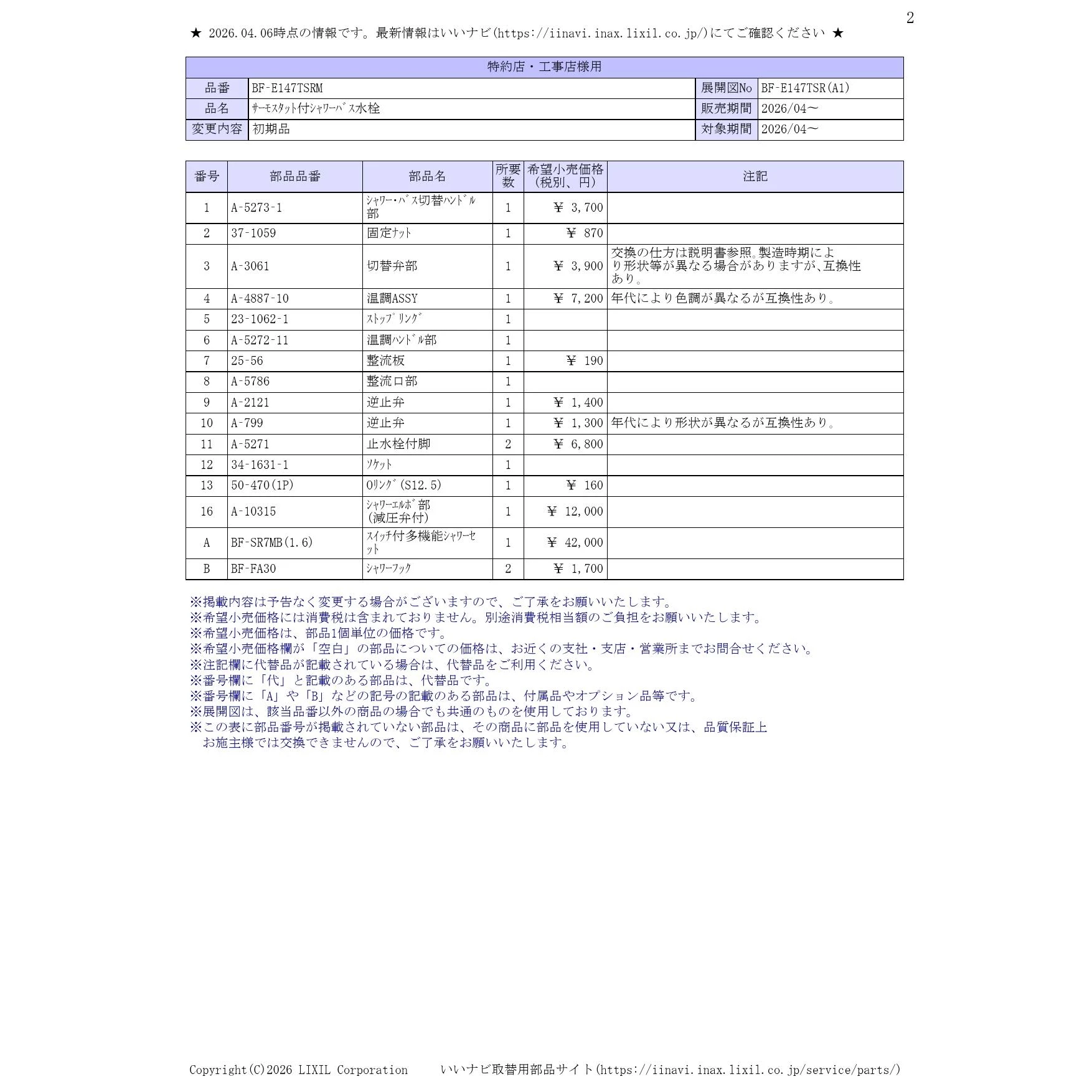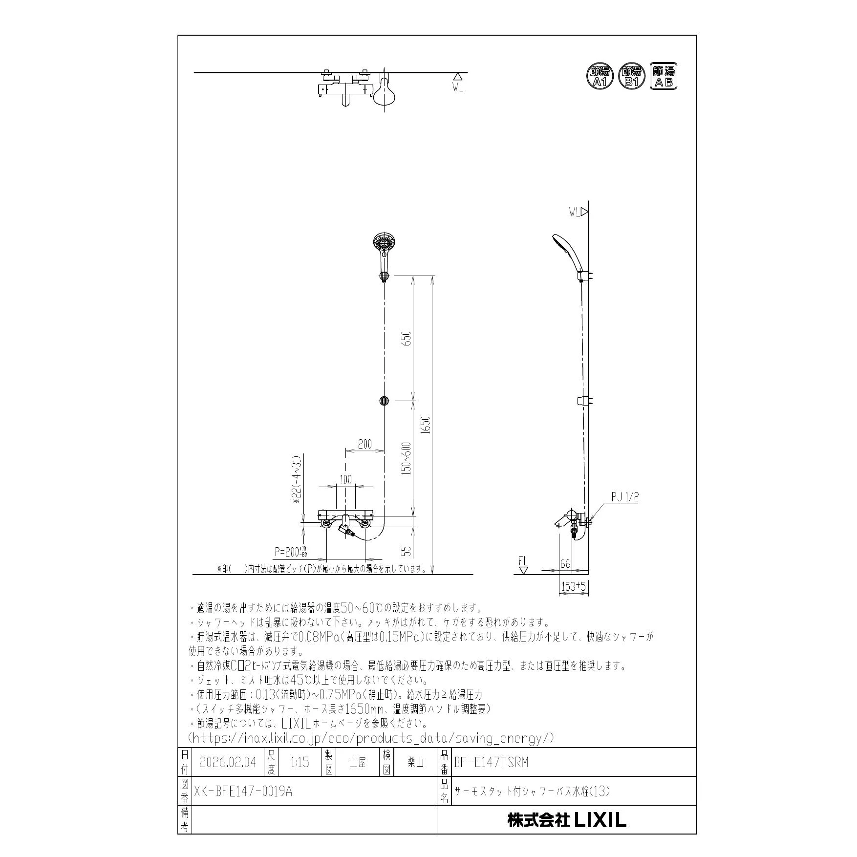 LIXIL(リクシル) BF-E147TSRM 取扱説明書 商品図面 施工説明書 分解図