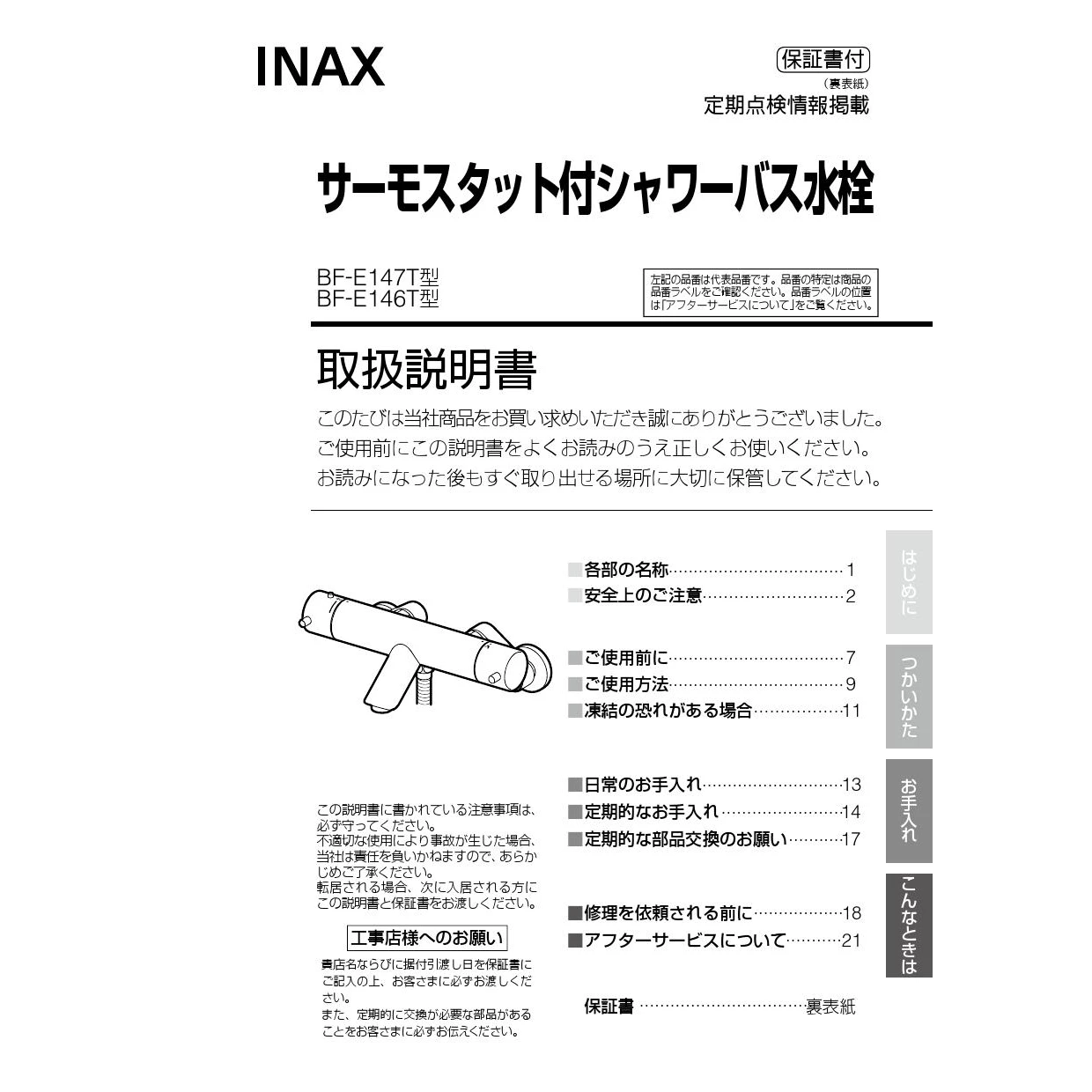 BF-E147TSR サーモスタット付シャワーバス水栓(BF-E147T型)取扱説明書