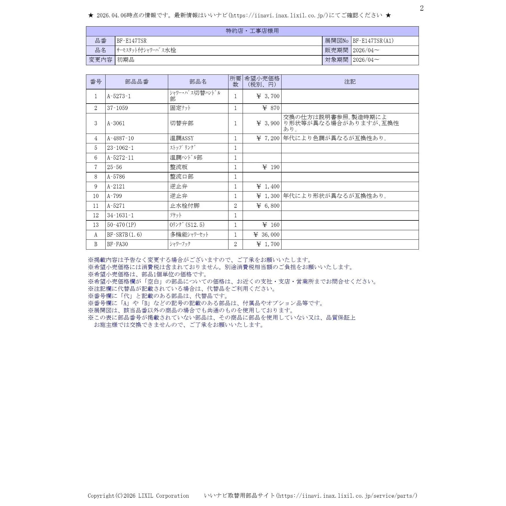 LIXIL(リクシル) BF-E147TSR 取扱説明書 商品図面 施工説明書 分解図