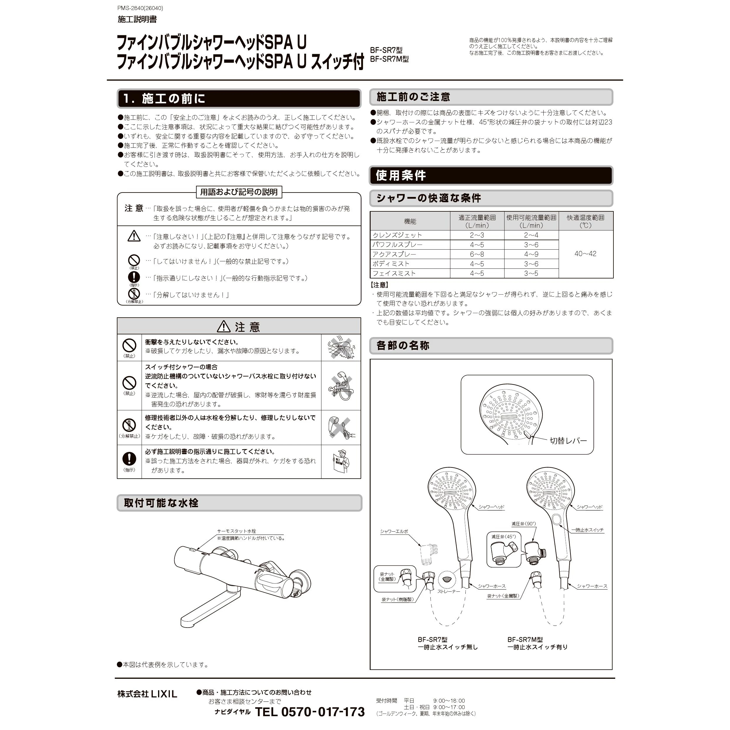 BF-A147TSRM ファインバブルシャワーヘッドSPA U施工説明書